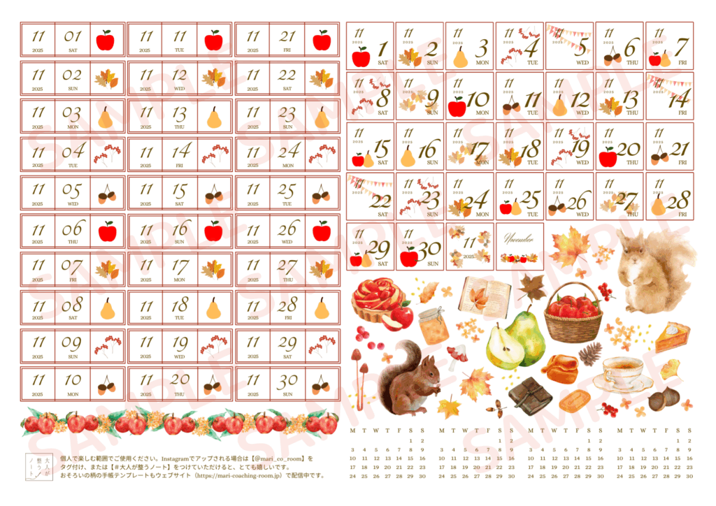 2025年11月の日付シートです。
