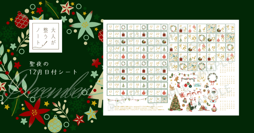 聖夜の12月日付シート【手帳素材無料ダウンロード】