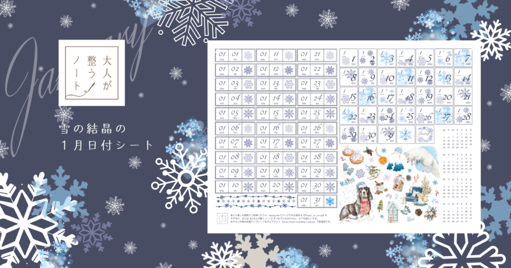 雪の結晶の1月日付シート【手帳素材無料ダウンロード】